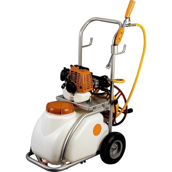 Prskalica na kolicima sa motornim pogonom olakšava posao i ubrzava proces rada.