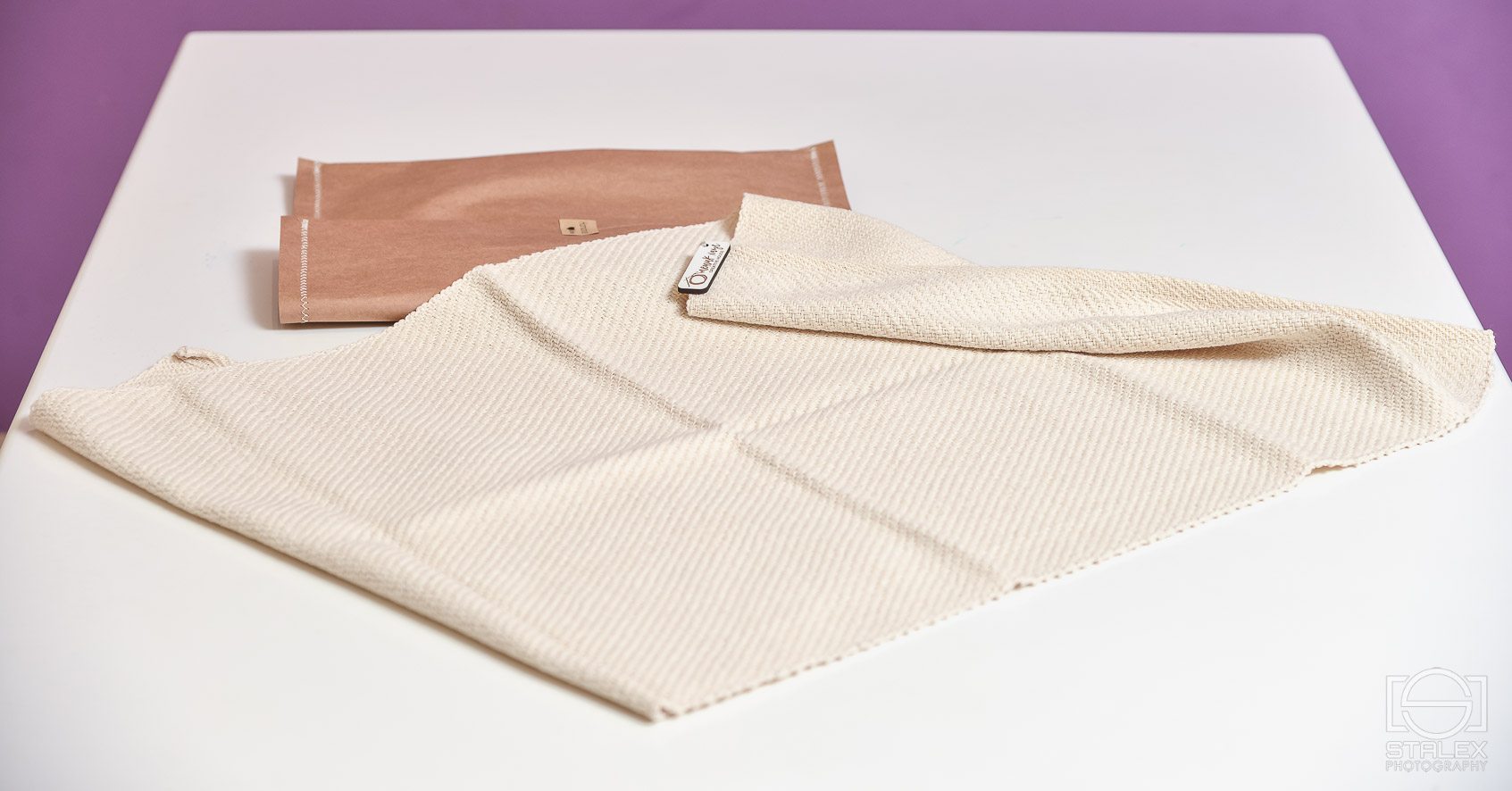 Ručno tkani nadstolnjak MILJENCE, od 100% prirodnih materijala, dostupan u dimenziji 80 x 40 cm, u tri boje – prirodna boja pamuka (krem), siva, sivo-beli melanž.